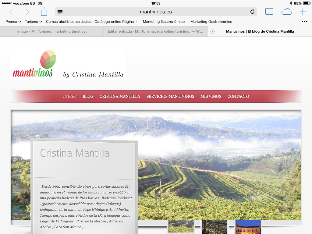 Una de las primeras mujeres profesionales dedicadas al mundo de la enología en Galicia y en las Rías Baixas en particular, siendo responsable de algunas de las mejores marcas de vinos y bodegas de Galicia, deposita la confianza en Mr Turismo para desarrollar parte de su marketing digital: social media marketing, y su nuevo web site bajo su marca Mantivinos son algunas de las propuestas a realizar.