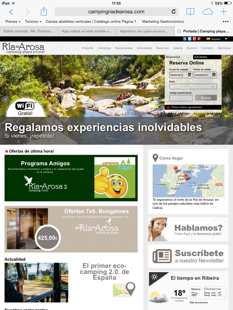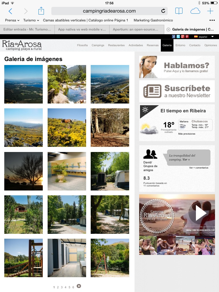 Imágenes de la nueva web del Camping Ría de Arosa: